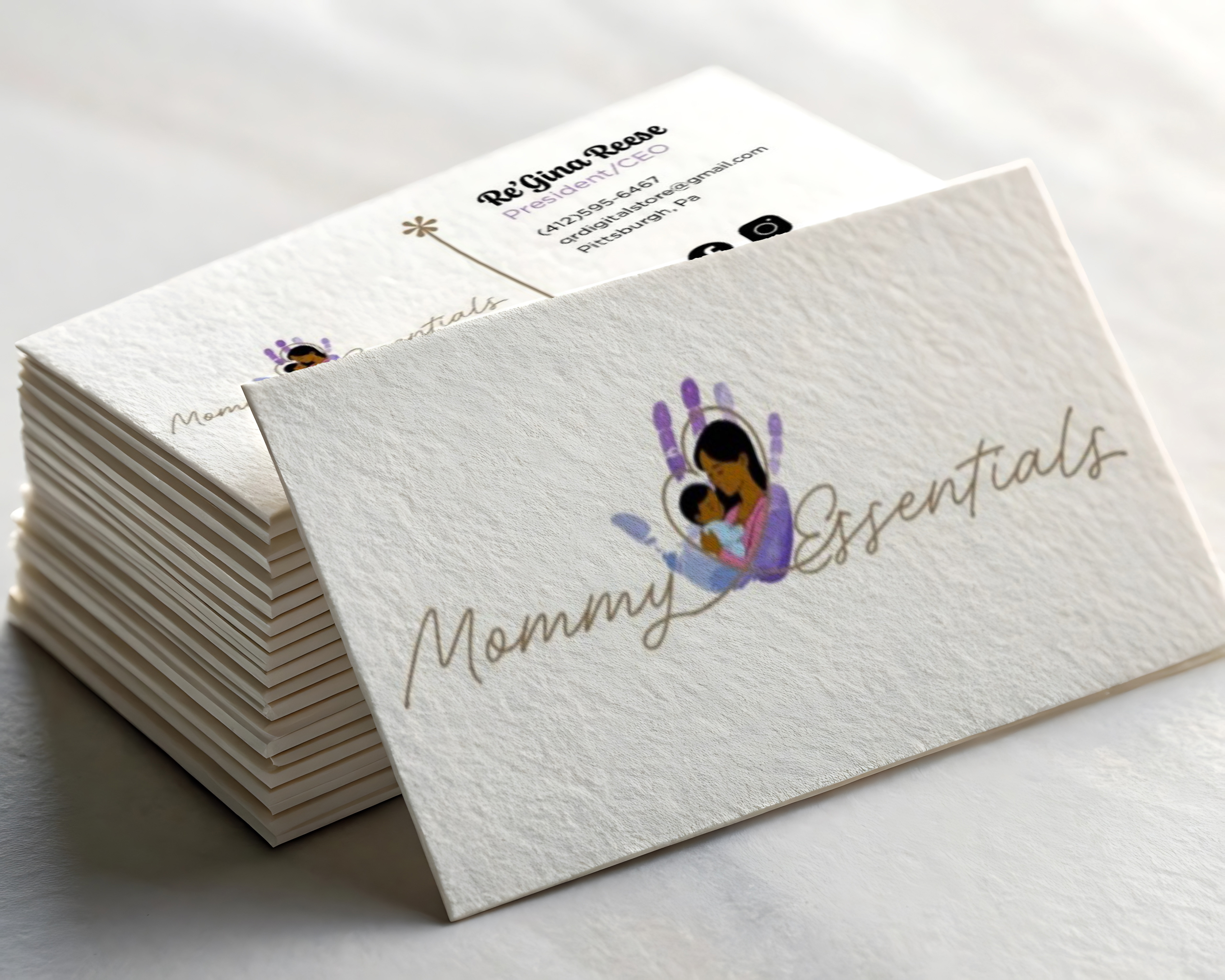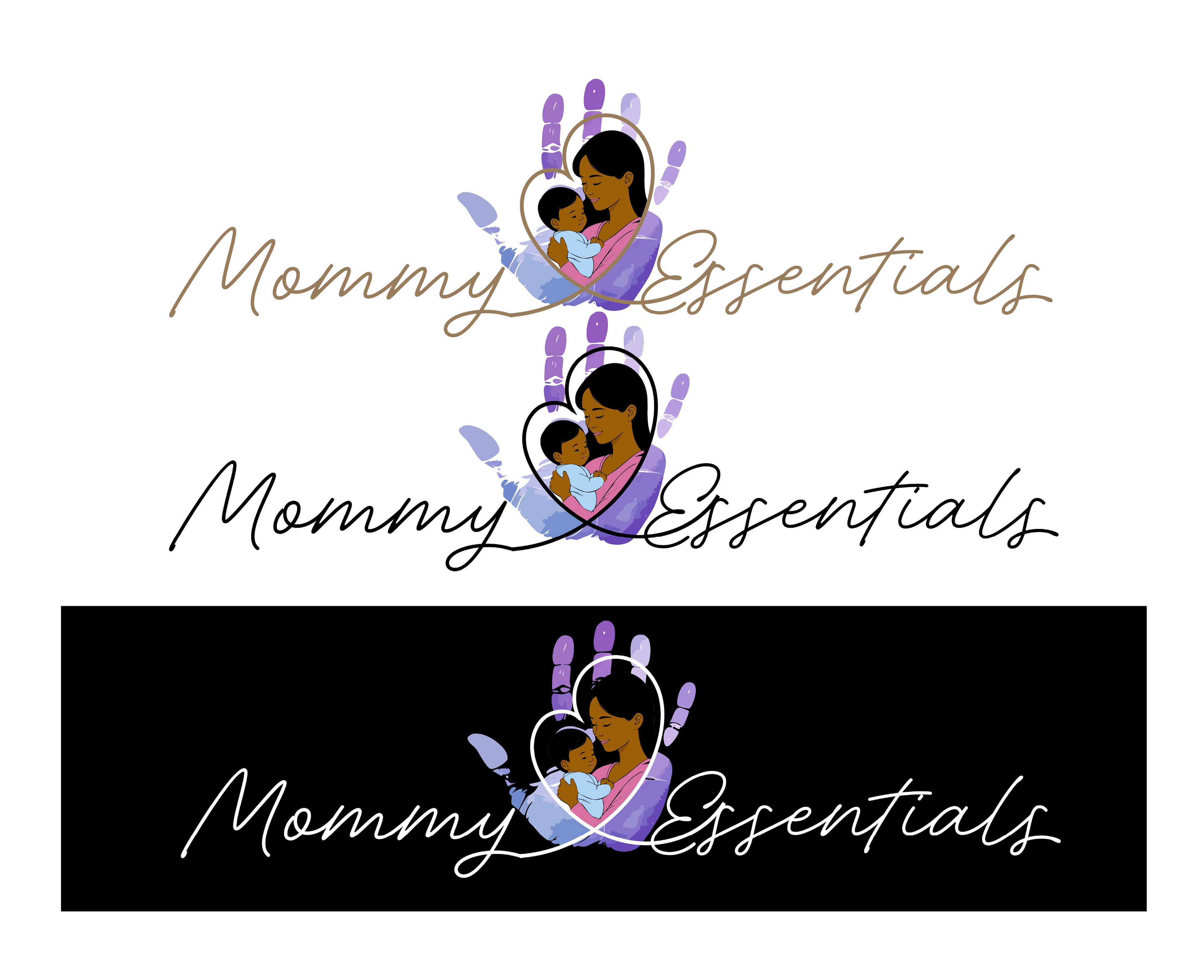 Mommy Essentials is more than a marketing brand, it is a heartfelt tribute to motherhood, resilience, and the quiet strength found in everyday care. Created with intention and cultural significance, the brand centers on celebrating and supporting mothers through every stage of their journey. At its core, Mommy Essentials recognizes that motherhood is transformative, powerful, and deserving of both visibility and respect. The logo serves as a visual narrative of that mission. A handprint symbolizes the helping hand every mother deserves. Support during moments of change, growth, and vulnerability. It represents community, guidance, and reassurance. The flowing cursive typography introduces softness and elegance, honoring the grace mothers carry even when faced with challenges. This balance between strength and delicacy reflects the dual nature of motherhood itself. At the heart of the design is the image of a Black mother holding her baby, a powerful symbol of love, resilience, and generational legacy. This imagery intentionally centers Black motherhood, celebrating its beauty and strength while acknowledging its unique cultural depth. Mommy Essentials exists to uplift and empower moms by providing products that are affordable, convenient, and reliable. Ensuring that care, dignity, and support are always within reach.